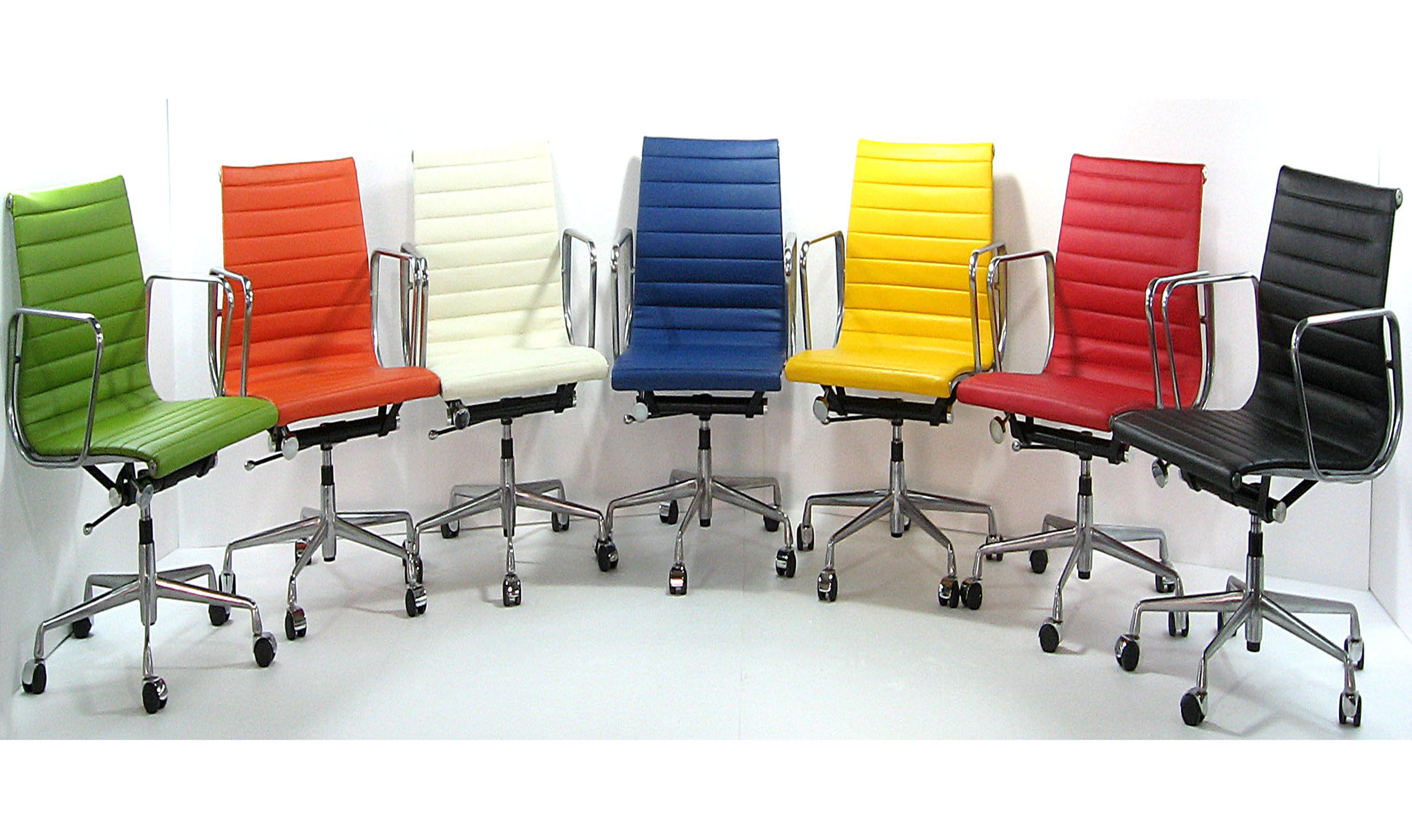 La silla de oficina Eames – El conjunto de sillas de aluminio Eames fue desarrollado originalmente en 1958 como un proyecto especial de Ray EAMEL; es uno de los diseños de mobiliario de aluminio del siglo 20; Con un marco de aluminio y base; Tapizado en diferentes colores de la piel; La silla de oficina Eames - El conjunto de sillas de aluminio Eames tienen una base de 5 estrellas y el mecanismo basculante giratorio con Ajuste a la altura del asiento manual o neumático, se desliza o rueda correspondientemente.