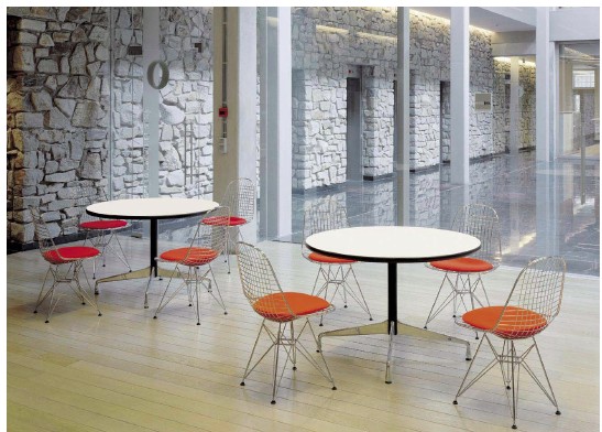 Algunos ejemplos incluyen las sillas de plástico o fibra de vidrio moldeados a partir de la década de 1950 y el famoso sillón y otomana de 1956. Mobiliario de oficina, cómoda y elegante fue creado en la década de 1960, así como los asientos de Aeropuerto diseñados por Dulles y O'Hare. Tandem Sling que están todavía está en uso en los aeropuertos de todo el mundo hoy en día.