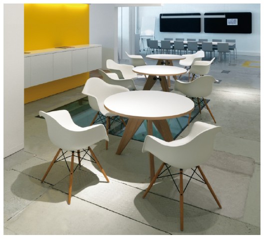 Algunos ejemplos incluyen las sillas de plástico o fibra de vidrio moldeados a partir de la década de 1950 y el famoso sillón y otomana de 1956. Mobiliario de oficina, cómoda y elegante fue creado en la década de 1960, así como los asientos de Aeropuerto diseñados por Dulles y O'Hare. Tandem Sling que están todavía está en uso en los aeropuertos de todo el mundo hoy en día.